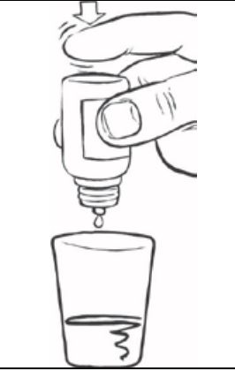 As gotas devem ser diluídas em água açucarada e nunca administradas diretamente na língua.