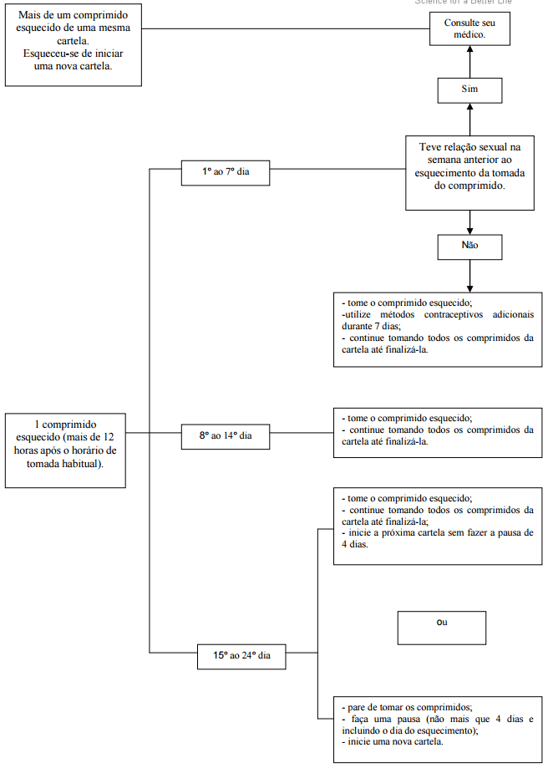 Se mais de um comprimido de uma mesma cartela for esquecido, consulte seu médico. Quanto mais comprimidos sequenciais forem esquecidos, menor será o efeito contraceptivo.