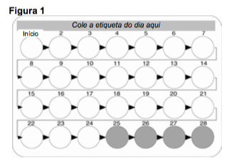 Cole-o na cartela, logo acima da fileira de comprimidos brancos ativos onde se lê Cole a etiqueta aqui. Isto possibilitará que você verifique se tomou o comprimido diário.