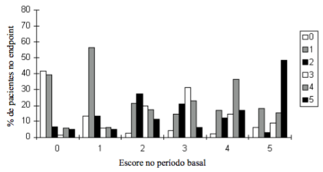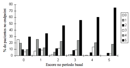 A Figura 1 mostra que, independente dos níveis da função no período basal (baseline), a função subsequente em pacientes tratados com este medicamento foi melhor do que a vista em pacientes tratados com placebo.