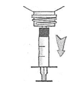 - Virar o frasco e aspirar a medida desejada. Puxar cuidadosamente o êmbolo, medindo a quantidade exata em mL, conforme a posologia recomendada pelo seu médico (fig. 3).