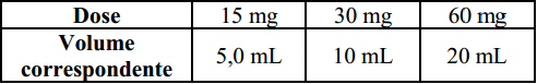 Por exemplo, para uma criança de 10 kg a dose será de 5,0 mg (ou 1,7 mL) a 10,0 mg (ou 3,3 mL).