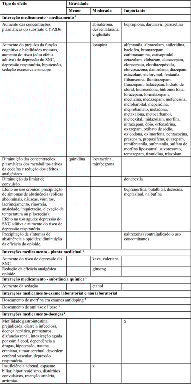 No corpo a codeína é convertida em morfina pela enzima CYP2D6. Alguns pacientes que são CYP2D6 metabolizadores ultrarrápidos convertem a codeína em morfina em uma taxa mais rápida do que o normal, resultando em níveis superiores aos normais de morfina no sangue, podendo conduzir a efeitos tóxicos, tais como dificuldade de respiração.