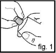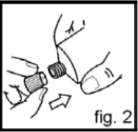- Com a parte pontiaguda superior da tampa, perfure o lacre da bisnaga (fig. 2).
